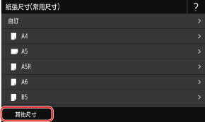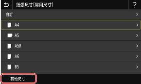 如果裝入紙張的紙張尺寸未顯示,選擇 <其他尺寸>。