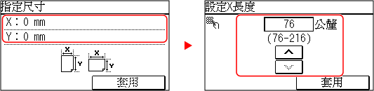 選擇 <X> 或 <Y>,然後輸入每邊的長度。