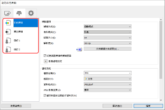 可以將常用的掃描設定註冊到 [自訂 1] 和 [自訂 2]。