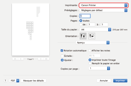 Si aucune option d'impression n'est affichée, cliquez sur [Afficher les détails] en bas de la boîte de dialogue.