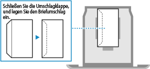 Hier wird beschrieben, wie Sie Briefumschläge korrekt einlegen und darauf drucken.