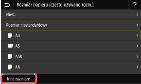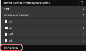 Jeśli rozmiar załadowanego papieru nie jest wyświetlany, wybierz <Inne rozmiary>.