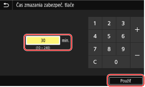 Zmeňte obdobie času, dokedy sa zabezpečený dokument uchováva v pamäti, a potom vyberte položku <Použiť>.