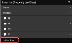 אם גודל הנייר של הנייר הנטען אינו מוצג, בחר <Other Sizes>.