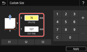 ציין את גודל הנייר הטעון ב-[Page Size] ואת [Output Size].