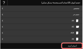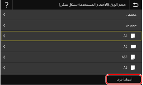 إذا لم يتم عرض حجم الورق الذي تم تحميله، فحدد <أحجام أخرى>.