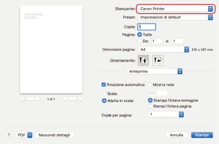 Fare clic su [Stampa] o [OK] nella finestra di stampa.
