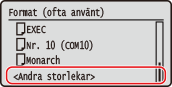 Välj <Andra storl.> om pappersformatet som du har fyllt på inte visas.