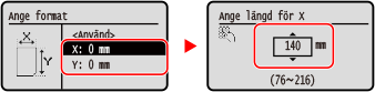 När du fyller på förtryckta papper i universalfacket visas skärmen för att välja pappersformat. Följ anvisningarna nedan för att ange inställningarna.
