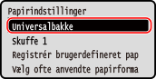 Hvis skærmen med papirformat ikke vises, selvom der er lagt papir i universalbakken,