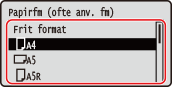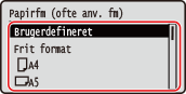 Ofte anvendte papirformater er forudindstillet. Følg nedenstående trin for at aktivere indstillingen af papirformatet, når du ilægger papir.