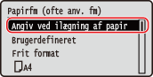 Hvis papirformatet for det ilagte papir ikke vises, skal du vælge <Andre formater>.