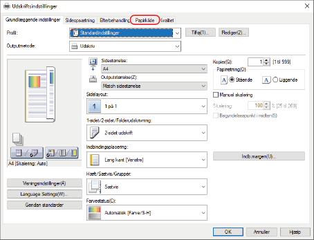 Klik på [Papirkilde] i printerdriverens vindue med udskriftsindstillinger.