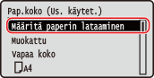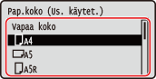 Usein käytettävät paperikoot on esiasetettu. Jos haluat sallia paperikoon asettamisen paperia lisättäessä, noudata alla olevia ohjeita.