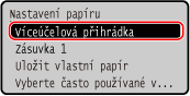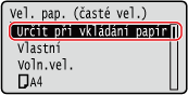 Pokud potřebujete vkládaný papír často měnit, vyberte možnost <Volná>; zjednodušíte tak postup, který se provádí při každé změně nastavení. Vezměte však na vědomí, že toto nastavení umožňuje zařízení provádět tisk, i když není shoda mezi nastavením typu papíru v ovladači tiskárny a typem papíru vloženým do zařízení.