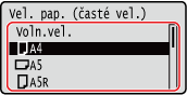 Pokud jste vložili papír velikosti A5, vyberte <A5R>.