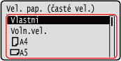 Pokud se nezobrazí velikost vloženého papíru, vyberte <Jiné velikosti>.