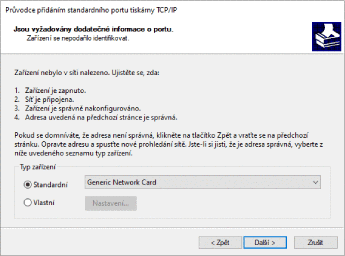 Nový port přidejte, pokud jste změnili IP adresu zařízení nebo pokud jste nevybrali správný port při instalaci ovladače ze složky tiskárny Windows.