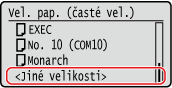 Pokud se nezobrazí velikost vloženého papíru, vyberte <Jiné velikosti>.