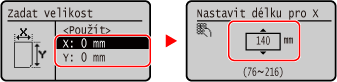 Zadejte velikost papíru vloženého papíru v nabídce [Velikost strany] a [Velikost výstupu].