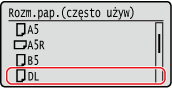 Gdy koperty są załadowane do tacy wielofunkcyjnej, na wyświetlaczu pojawia się ekran ustawień służący do wyboru rozmiaru papieru. W celu określenia ustawień należy wykonać poniższe kroki.