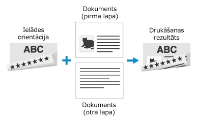 Kad iepriekš apdrukātam papīram ar logotipu vēlaties pārslēgt starp vienpusējo drukāšanu un divpusējo drukāšanu, ir jāmaina puse, uz kuru ievietotais papīrs ir pavērsts. Taču, ja vienumam <Pārslēgt papīra padeves metodi> norādāt <Apdrukājamās puses prioritāte>, tad puse, uz kuru papīrs ir pavērsts vienpusējai drukāšanai, tiek iestatīta vienāda ar pusi, kas tiek izmantota divpusējai drukāšanai (ar logotipa pusi pavērstu uz leju).