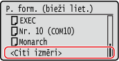 Ja ievietotā papīra formāts netiek rādīts, atlasiet <Citi izmēri>.
