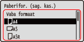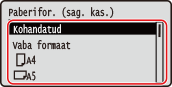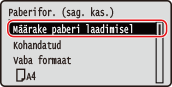 Sageli kasutatavad paberiformaadid on eelnevalt määratud. Et saaksite paberiformaati määrata paberi laadimisel, toimige järgmiselt.