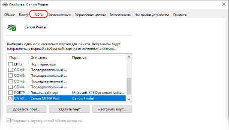 Добавьте новый порт, если вы изменили IP-адрес аппарата, или если вы не выбрали правильный порт при установке драйвера из папки принтера Windows.