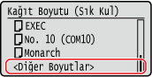 Yüklenen kağıdın kağıt boyutu görüntülenmiyorsa <Diğer Boyutlar> öğesini seçin.