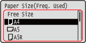 אם אתה מטעין נייר בגודל A5 בחר <A5R>.