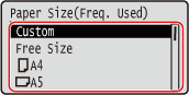 גדלי נייר בשימוש תכוף מוגדרים מראש. כדי לאפשר את הגדרת גודל הנייר בעת טעינת נייר, בצע את השלבים שלהלן.