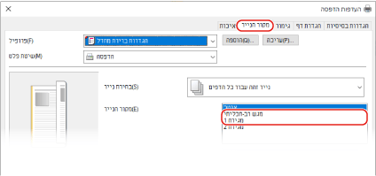 בכרטיסייה [Paper Source], בחר את מקור הנייר שבו הוטען הנייר המודפס מראש ב-[Paper Source].