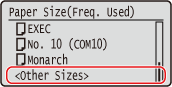אם גודל הנייר של הנייר הנטען אינו מוצג, בחר <Other Sizes>.