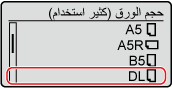 عند تحميل الأظرف في الدرج متعدد الأغراض، تظهر شاشة الإعداد لتحديد حجم الورق على شاشة العرض. اتبع الخطوات أدناه لتحديد الإعدادات.