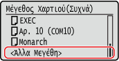 Εάν δεν εμφανίζεται το μέγεθος χαρτιού του χαρτιού που έχει φορτωθεί, επιλέξτε <Άλλα μεγέθη>.