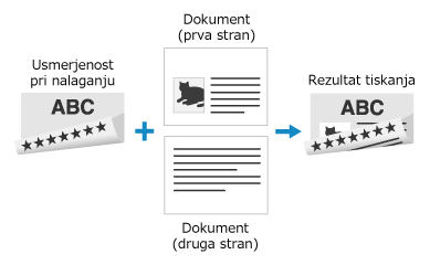 Če želite preklopiti med enostranskim in obojestranskim tiskanjem na predhodno potiskani papir z logotipom, morate spremeniti, kako je naložen papir obrnjen. Če pa določite <Prioriteta strani za tiskanje> za <Preklop načina dodajanja papirja>, je način, kako je papir obrnjen za enostransko tiskanje, nastavljen enako kot pri dvostranskem tiskanju (s stranjo z logotipom navzdol).