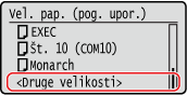 Če velikost vloženega papirja ni prikazana, izberite <Druge velikosti>.