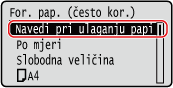 Ako često morate promijeniti papir koji se umeće, postavite na <Slob.>; time ćete smanjiti broj koraka potrebnih za promjenu postavke svakog puta. Međutim, imajte na umu da ova postavka omogućuje da uređaj ispisuje čak i ako postoji nepodudarnost između postavke vrste papira u upravljačkom pogonu pisača i vrste papira koji je umetnut u uređaj.