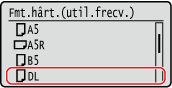 Selectați formatul de hârtie al plicurilor încărcate în [Dimensiune hârtie].