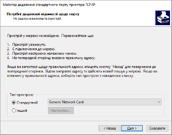 У разі зміни IP-адреси апарата або додавання принтера може статися помилка й буде неможливо виконати друк.