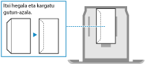 Hautatu [Paper Source] [Feature Sets] atalean eta gero aukeratu [Envelope 1] edo [Envelope 2] [Paper Type] atalean.