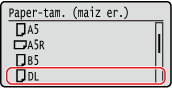 Gutun-azalak erabilera anitzeko erretiluan kargatuta daudenean, paperaren tamaina aukeratzeko pantailaren ezarpena bistaratzen da. Jarraitu beheko urratsak ezarpenak zehazteko.