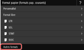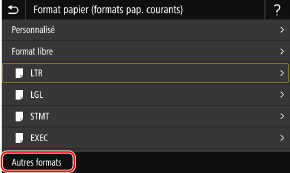 Si le format du papier chargé n'est pas affiché, sélectionnez <Autres formats>.