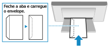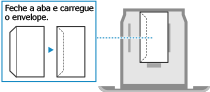 Carregue os envelopes de modo que a borda com a aba esteja voltada para o lado esquerdo, com a frente (lado impresso) voltado para cima.