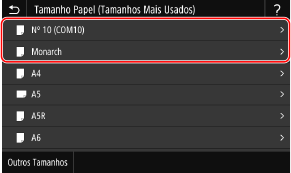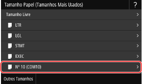 Selecione o tamanho de papel dos envelopes carregados em [Tamanho do Papel].