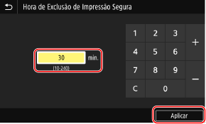 Altere o período de tempo até que um documento protegido seja mantido na memória, depois pressione <Aplicar> (