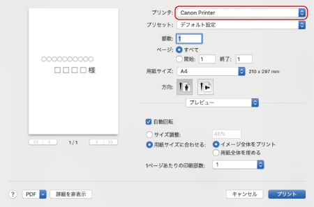 [プリンタ]で本機を選ぶ