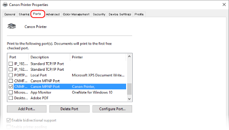 Add a new port if you have changed the IP address of the machine, or if you did not select the correct port when you installed the driver from the Windows printer folder.
