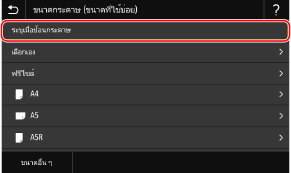 หากขนาดกระดาษของกระดาษที่ใส่ไว้ไม่แสดงขึ้นมา ให้เลือก <ขนาดอื่น ๆ>
